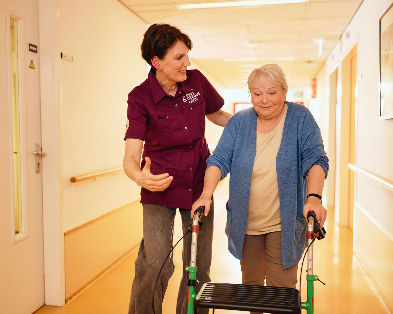 De fysiotherapeuten van Zorggroep Oude en Nieuwe Land zijn gespecialiseerd in bewegen bij het ouder worden. Zij behandelen onder andere klachten na een beroerte en bij dementie, MS en Parkinson. Ook helpen zij bij orthopedische problemen, zoals na een breuk, amputatie of bij een knie- of heupprothese. Daarnaast is er aandacht voor valpreventie. Het doel is dat u zo lang mogelijk zelfstandig thuis kunt blijven wonen.